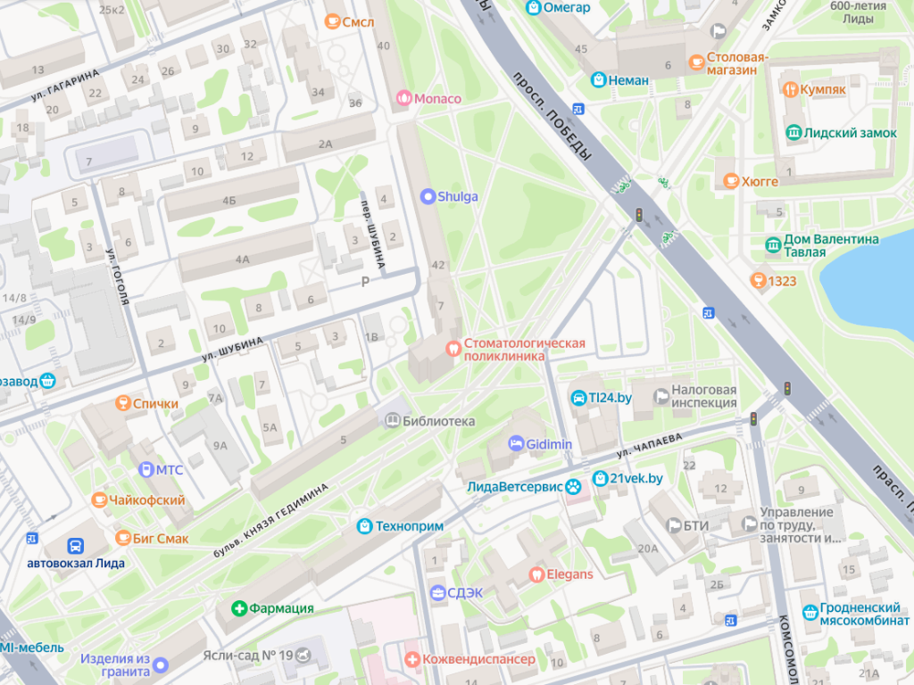 Справочно: бульвар Князя Гедимина – пешеходный бульвар, который находится между проспектом Победы и улицей Труханова, является кратчайшей пешеходной дорогой между вокзалами и Лидским замком. Застроен типовыми пятиэтажными домами второй половины ХХ века.